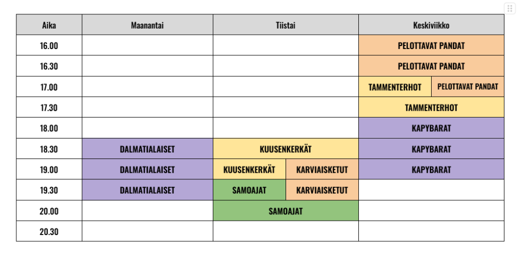 Oravanmarjojen ryhmien kokousajat 25-26
